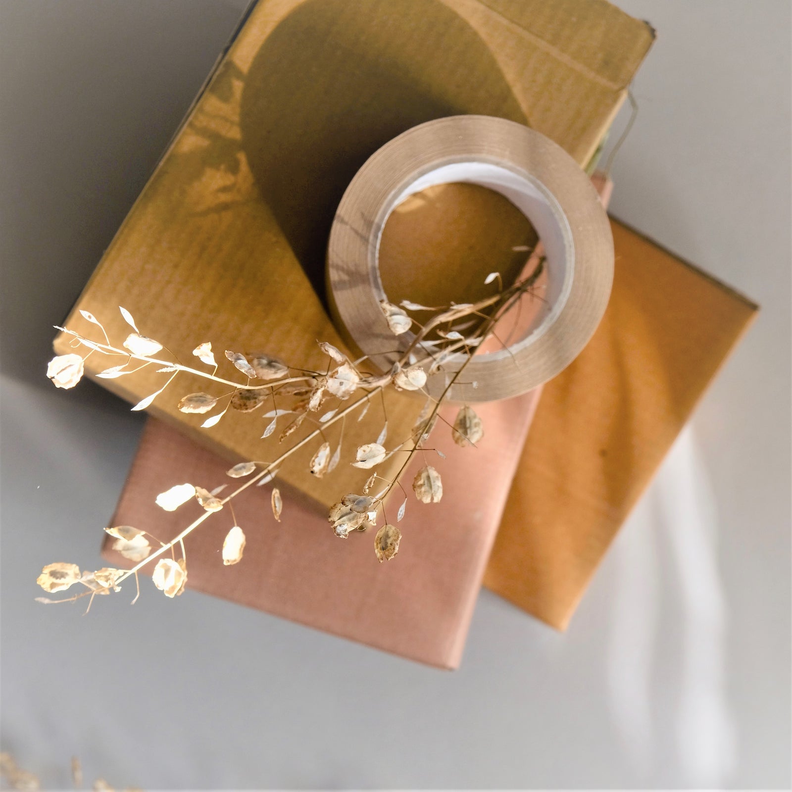 Vi har en vision om at være bæredygtig hele vejen fra produktion til dig, derfor er vores postemballage selvfølgelig lavet i FSC pap. Vores boblekuverter er lavet i genbrugsmaterialer og ligeledes i FSC pap. For at beskytte smykkerne, bruger vi en lille smule bobleplast, som vi anbefaler at sortere som blød plastikaffald.